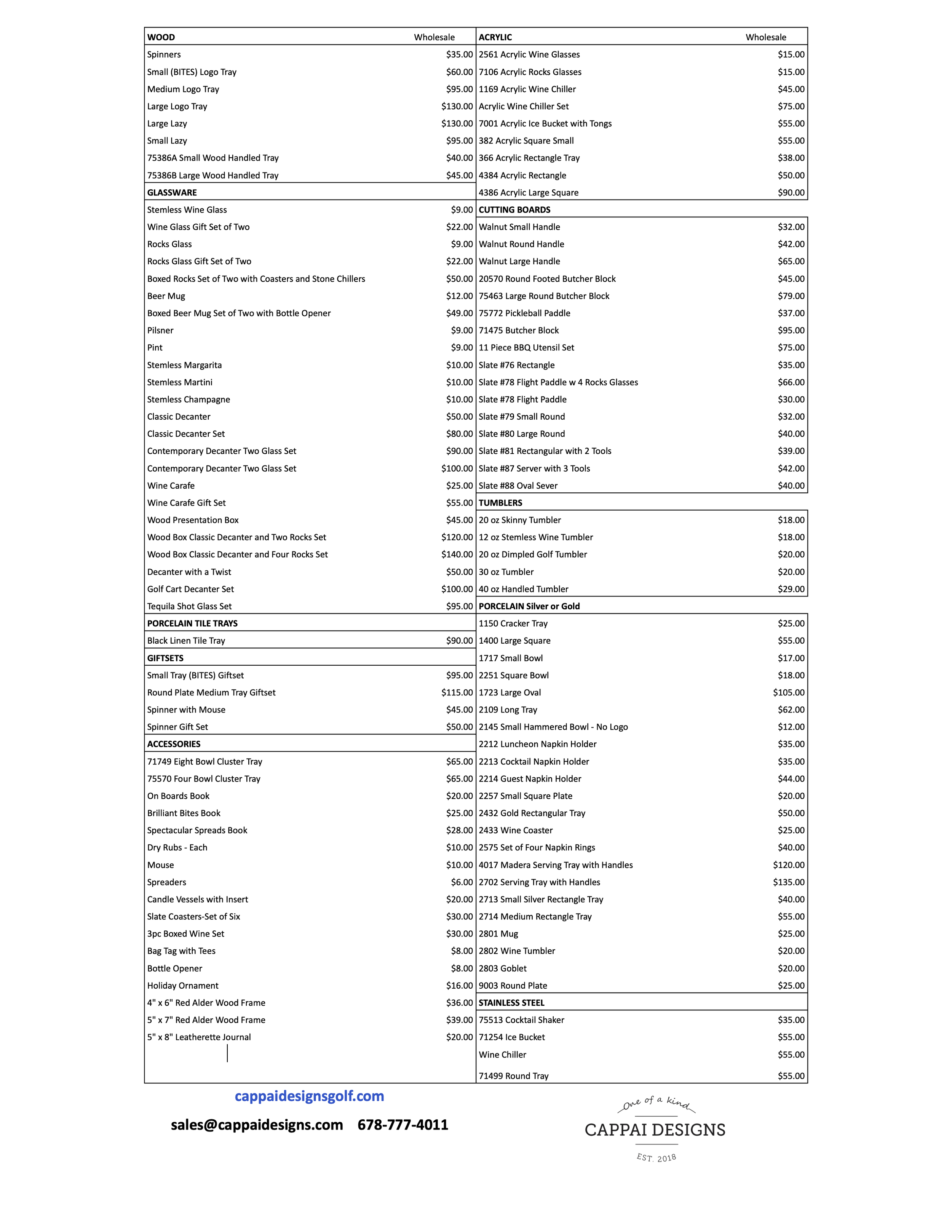2026 Price List